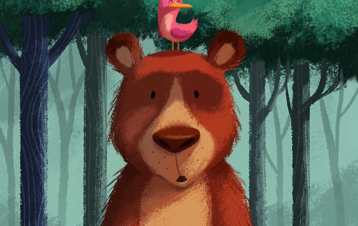 Tags: 2D Illustration, Cartoons, Characters, Creatures, Animals, Bear, Forest, Bird.
