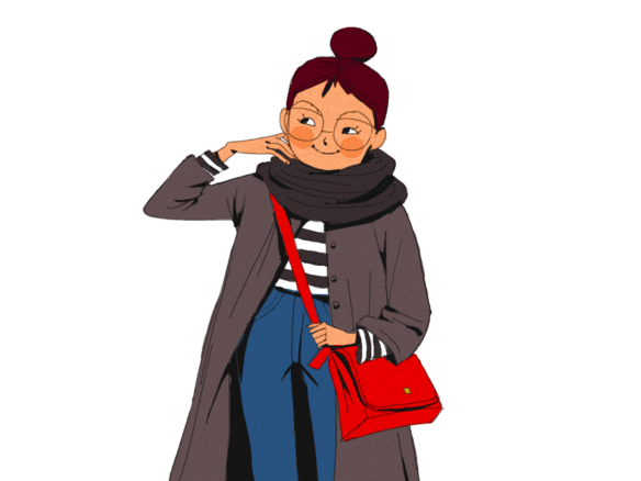 A 2D portrait illustration of a school girl smiling.