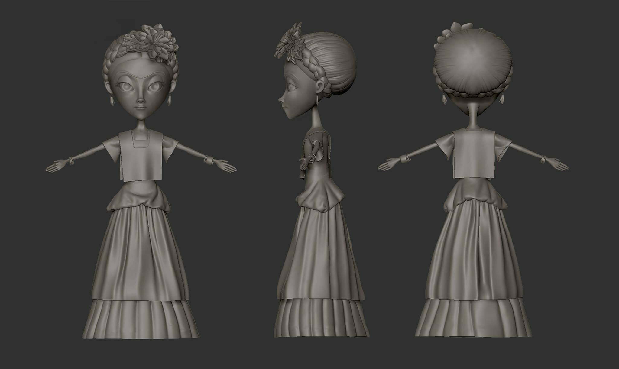 A stylised character illustration of famous Mexican painter Frida Kahlo created as part of a short film.