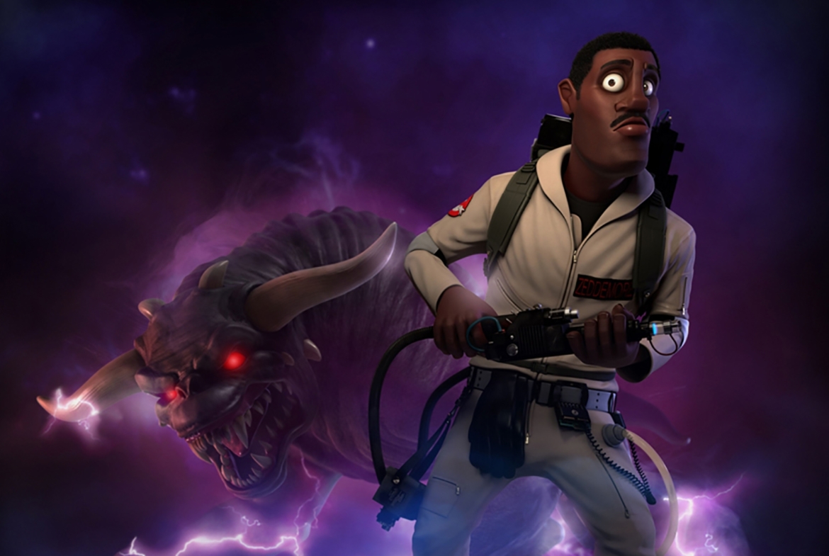 A stylised 3D illustration of Winston Zeddemore from the film Ghostbusters.